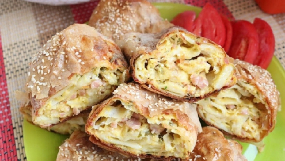 Skuvati makarone, ohladiti, dodati jaja, pavlaku, sir, peršunov list seckan, seckanu šunku, soli i griz pa sve dobro izmešati.