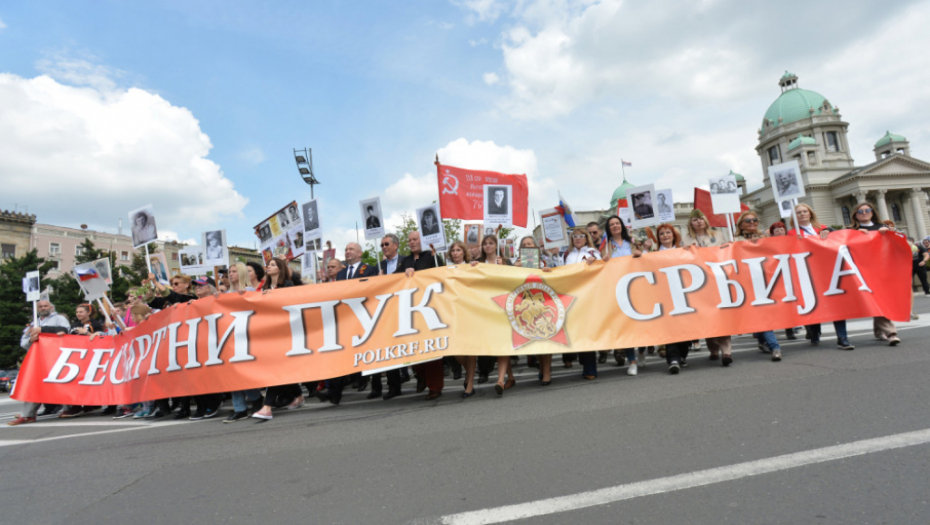 "Danas se maršom 'Besmrtnog puka' sećamo svih onih hrabrih boraca, naših predaka koji su poginuli, dali svoje živote kako bi danas Evropa bila slobodna. Sećamo se i miliona drugih žrtava koje su poginule u borbi protiv najvećeg zla u istoriji čovečanstva, a to je fašizam", kaže Vesić.