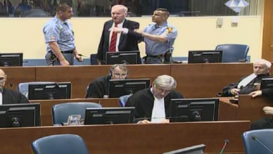 Ipak, sudija Orije nije to dozvolio, pa je Mladić počeo da se buni. Tada je doneta odluka da tribunal na kratko prekine sa radom, kako bi Mladića izveli iz sudnice.