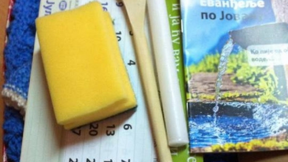 - Dobile smo nevešto upakovane kutije od cipela, u kojima su bili ženske gaćice, Jevanđelje po Jovanu, otvorene četkice za zube, otvorene paste za zube, sunđeri za sudove, ulošci, tamponi, gumene bombone, flomasteri, igračka Sneško Belić, Jevandjelje, kape, rukavicae, zimski šalovi, varjače... Zavisi kako u kom. Očigledno se radi o nekoj crkvenoj humanitarnoj pomoći - ispričala je jedna od zaposlenih.