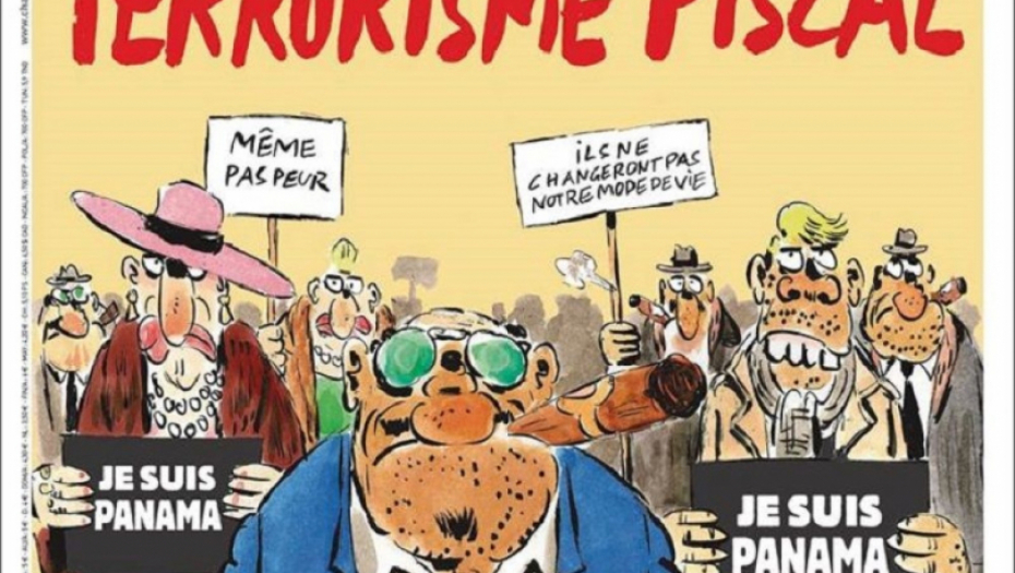 Francuski satirični nedeljnik "Šarli Ebdo" posvetio je ovonedeljnu naslovnu stranu "Panamskim papirima", odnosno skandalu povodom curenja miliona dokumenata koji razotkrivaju da su svetski bogataši, državnici, FIFA, 140 istaknutih političara, skrivali novac u poreskim oazama preko panamske advokatske firme "Mosak Fonseka".