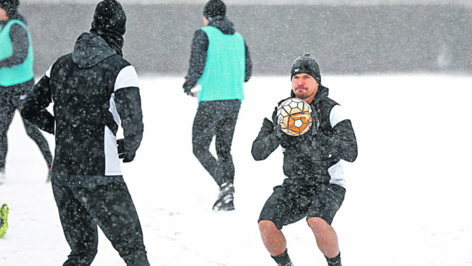 Na tabeli Superlige je mius šest u odnosu na večitog rivala Crvenu zvezdu, pa im ni ovih temperaturnih deset ispod nule ne predstavljaju veliki problem. Pogotovo se Valerij Božinov, bugarski napadač u crno-belom dresu, navikao na hladnije beogradske dane. Trening je izdržao stoički, ne zbog intenziteta prvog ovogodišnjeg treninga, već zbog toga što je 45 minuta bio u šortsu.