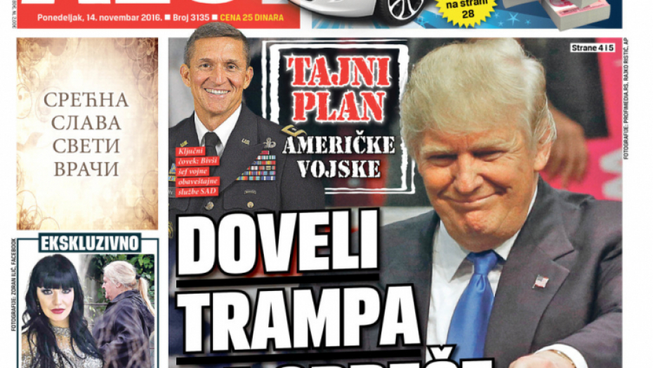 Umesto Hilari Klinton, zaoštravanja odnosa s Rusijom i izbijanja trećeg svetskog rata, u Belu kuću bi sada trebalo da uđe Donald Tramp, i to pre svega zahvaljujući podršci koju je dobio od preko 200 penzionisanih generala i admirala američke vojske, koji su i te kako uticali na to da kandidat republikanac postane novi predsednik SAD