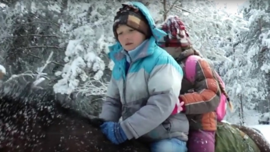 - Ja i seka idemo u školu, a tata nas vodi svaki dan sa konjem - opisuje Nemanja situaciju dok krupne pahulje padaju na njega, sestru i oca.