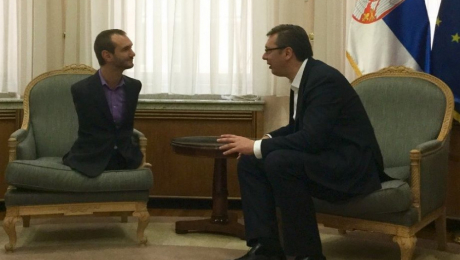 Poznati australijski motivacioni govornik srpskog porekla Nik Vujičić boravi u Beogradu kako bi promovisao svoju novu knjigu "Ostanite jaki" o vršnjačkom nasilju, a boravak u našoj zemlji iskoristio je da upozna i srpskog premijera.