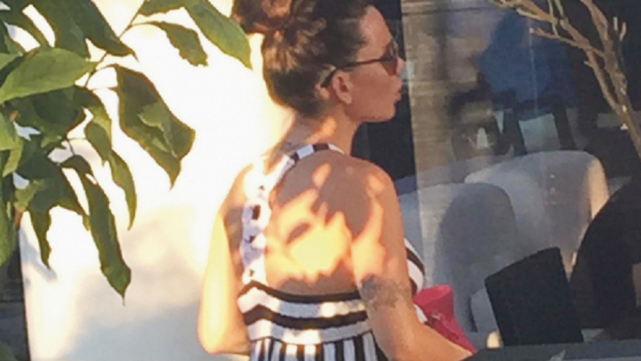 Njih dvoje su u popodnevnim satima došli u kafić gde je buduća mama tražila da sedne u deo bašte u kojem je hlad. Inače, Nikolija je sve vreme pila vodu, a s vremena na vreme ustajala je sa stolice i šetkala po bašti jer joj, očigledno, sada već veliki stomak ne dozvoljava da sedi mirno.