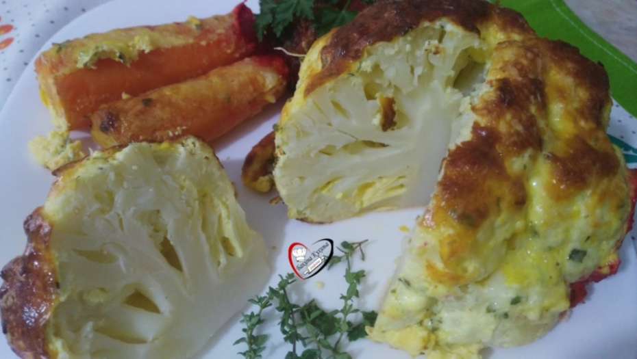 Verovatno ste do sada mislili da znate sve o tome kako možete da spremite karfiol. Ide u čorbe, u salate, musake... A da spremite zasebno celu glavicu karfiola, zapečenu u rerni. Predivnog je ukusa i hrskave korice. Pored toga što će biti ukusan prilog bilo kojem glavnom jelu, sigurno će i izgledati sasvim posebno na vašoj trpezi. Ovako pripremljen karfiol odlično je i kao predjelo uz neku salatu.
