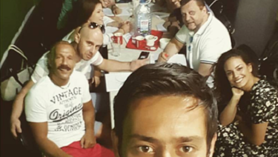 Glumac Milan Vasić podelio je na Fejsbuku fotografiju sa glimačkom ekipom među kojima su se našli Brankica Sebastijanović, Dragan Vujić - Vujke, Milan Kalinić i drugi.