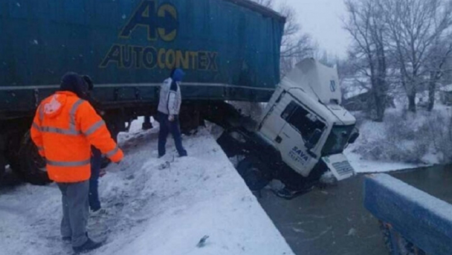 Prava drama odigravala se juče na autoputu kod Jagodine kada je kamion paraćinskih registarskih oznaka probio zaštitnu ogradu mosta kod sela Mijatovac i ostao da visi iznad ledene Morave.