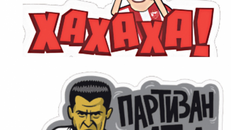 Najčešći stiker koji šalju navijači Crvene zvezde je onaj na kome trener Miodrag Grof Božović pozdravlja palcem nagore. Navijači upravo preko Miše i Grofa peckaju suparnički tabor. „Grobari“ proslavljaju golove uz antologijsko klečanje pokojnog Dragana Mancea, na stadion pozivaju prijatelje uz Sašu Iića, koji šalje poruku „Partizan igra“, kad žele da pokažu koliko su jaki, u poruci nalepe „parni valjak“. „Delije“ imaju stiker koji drugi nikad neće imati - pehar Kupa šampiona, viđanje na utakmicama najavljuju sa „Marakana, rođaci“, a ljubav izjavljuju grbom u srcu.
