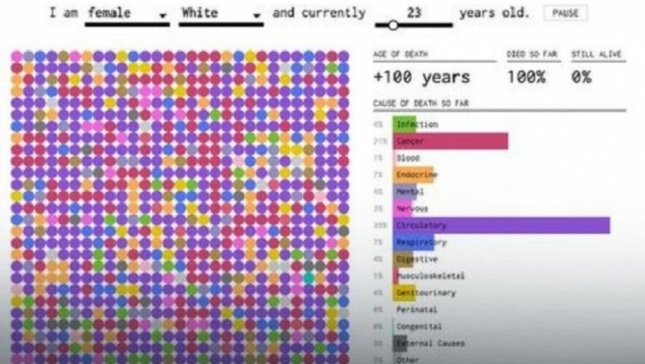 Drugim rečima, ova simulacija pokazuje kada su i od čega preminuli ljudi slični vama, pretpostavljajući da bi ista sudbina mogla da zadesi i vas.