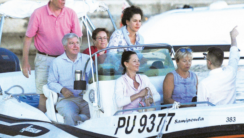 Na fotografijama se vidi kako veselo društvo u Fažani, koja se nalazi preko puta Briona, seda u čamac kojim kormilari Lidija, najmlađa sestra Udovički. Oni su se potom uputili prema Nacionalnom parku „Brioni“, koji za sve, sasvim sigurno i za američkog ambasadora, predstavlja veliku atrakciju. U srpskim medijima je prošle godine pisano da je na Brionima letovao i lider DS-a Bojan Pajtić, koji se, prema tim navodima, takođe družio sa Lidijom Udovički.