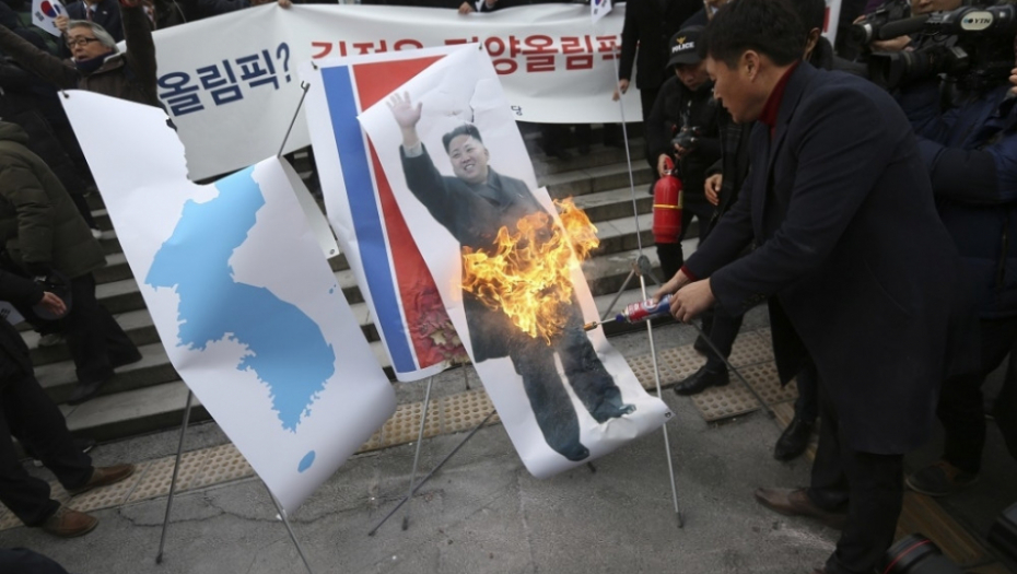 Oko 200 južnokorejskih konzervativnih aktivista spalilo je sliku lidera Severne Koreje Kim Džong Una na železničkoj stanici u Seulu, dok je kroz nju prolazio poznati devojački bend iz Severne Koreje.