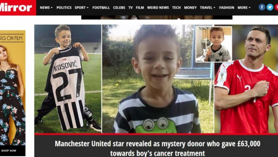 "Matić je poznat kao veoma human čovek, porodica bolesnog deteta je napisala da je želeo da ostane anoniman, ali su oni potvrdili informaciju da je uplatio novac koji je nedostajao da bolesni Dušan koji je ujedinio Srbiju bude primljen na lečenje koje košta oko 200 000 evra", dodaje se u izveštajima.