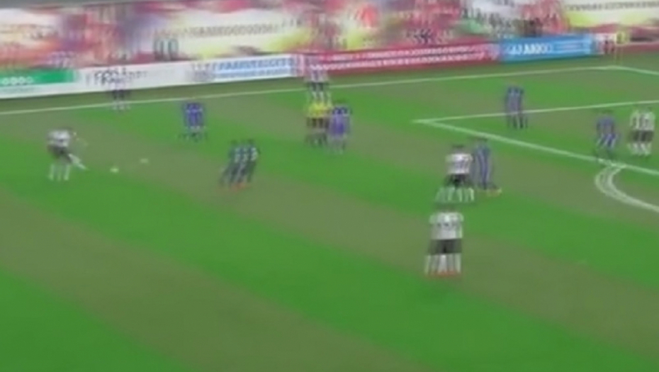 Dugalić je sa nešto manje od 40 metara šutirao i pogodio gornji levi ugao protivničkog gola.