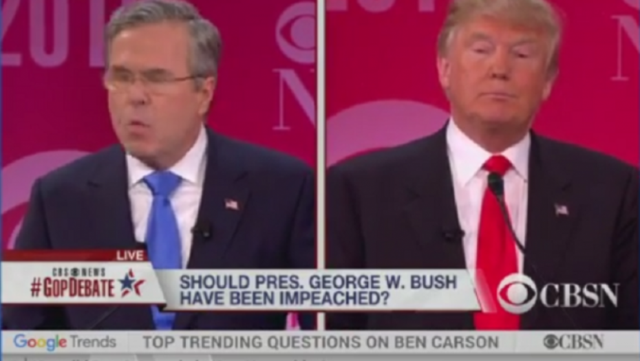 Rusija, rekao je Buš, ne napada džihadiste Islamske države, već pomaže sirijskom predsedniku Bašaru al Asadu. Tramp je potom napao Bušovog brata zbog rata u Iraku 2003. odnosno tvrdnji da Bagdad poseduje oružje za masovno uništavanje koje su se kasnije ispostavile kao pogrešne.