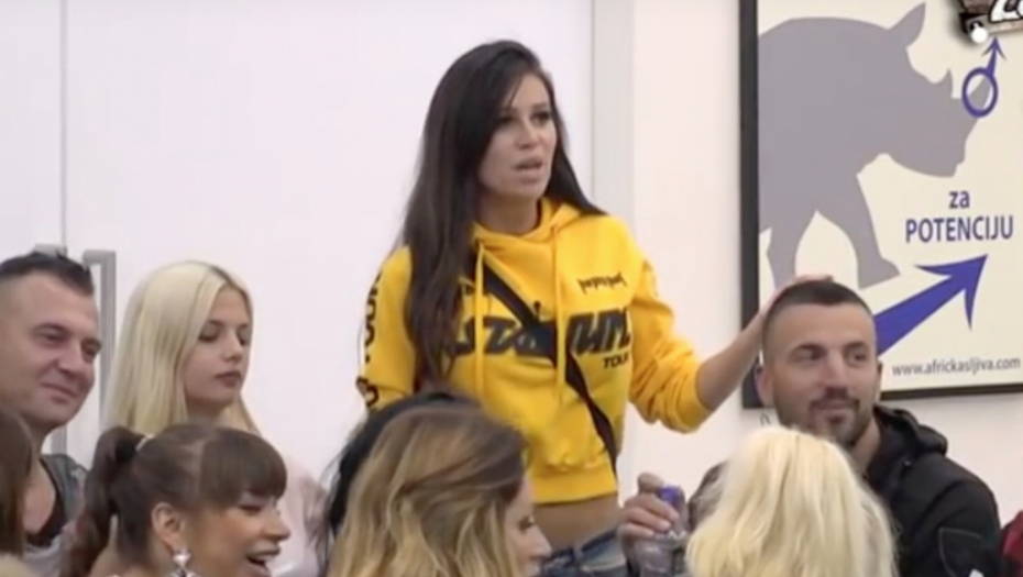 Zadrugarke su se zavodljivo uvijale uvežbavajući korake. Glavnu reč vodila je Luna, koja je davala instrukcije.