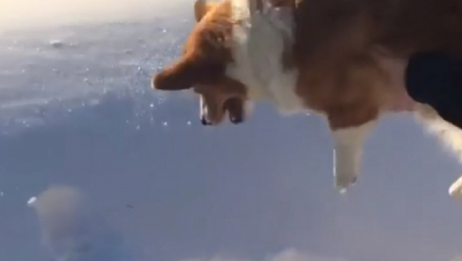 Na početku videa vlasnica je psa držala u rukama, a ispod njega je sneg podsećao na oblake i delovalo je da će ga ubrzo osoba koja ga drži izbaciti "iz aviona".