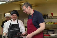 - Aca Lukas jede supu, ja spremio kecelju da pečem ćevape. Slika nadrealna. Spremamo se za Niško popodne.