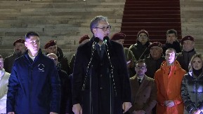 - Naše je da se prema njima nikad ne odnosimo onako kako su oni hteli da se odnose prema nama. Hteli su nas mrtve, ponižene, sklonjene iz zemlje. Mi njih želimo ovde u našoj zemlji, da žive sa nama, da ih saslušamo. Da razgovaramo sa njima, ali da se poštuju demokratska pravila i onaj ko dobije većinu da taj ima pravo da upravlja zemljom, a ne onaj ko misli da može da spali naše gradove, dovoljno ste spalili sve. Uništili ste sve što ste stigli. Borićemo se svi zajedno da pobedi pristojna Srbija. Niste vi čuvali ova mesta i Srbiju zbog mene, već zbog svojih roditelja, dece, nečeg što je vrednije od svakog od nas, a to je otadžbina. Srbin zna kad je otadžbina napadnuta da ustane - kazao je on.