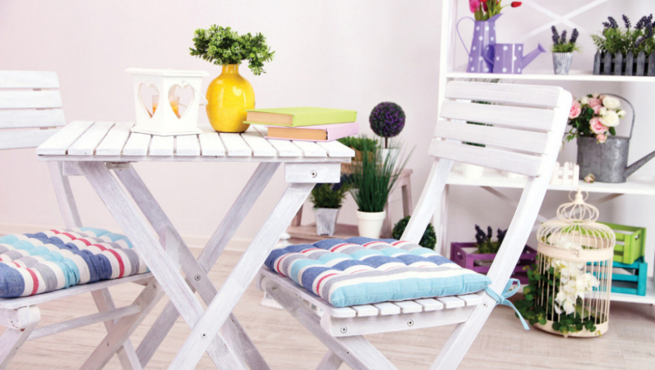 Uz beli nameštaj na terasi uvek koristite detalje u boji, poput vaza, jastučića i raznih bokala. Delovaće ljupko i razigrano!