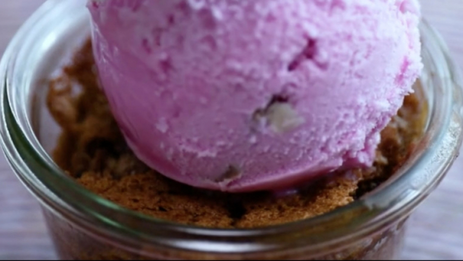 Topli kolač poslužite s kuglicom sladoleda.