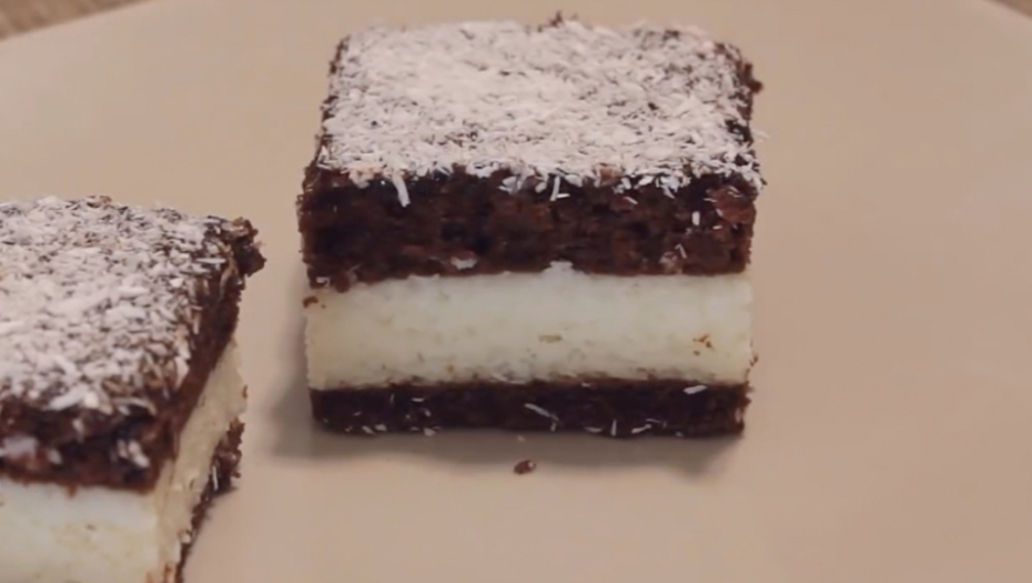 Ohladite kolač pa pospite sa kokosom i isecite u kocke ili štangle.