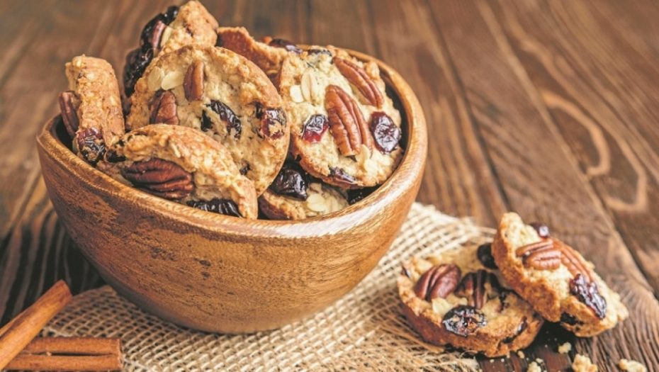 Priprema (45 minuta): Zagrejte rernu na 180 stepeni. U posudi pomešajte ovsene pahuljice, brašno, prašak za pecivo, cimet i so. U drugoj posudi pomešajte ulje, jaje i vanilu. Zatim dodajte med i promešajte smesu. Pomešajte sve sastojke dok se ne dobije homogena smesa. Dodati brusnice i bademe. Staviti smesu u frižider na 30 minuta i oblikovati u kolačiće na papiru za pečenje na prethodno pripremljenom plehu. Peći oko 15 minuta.