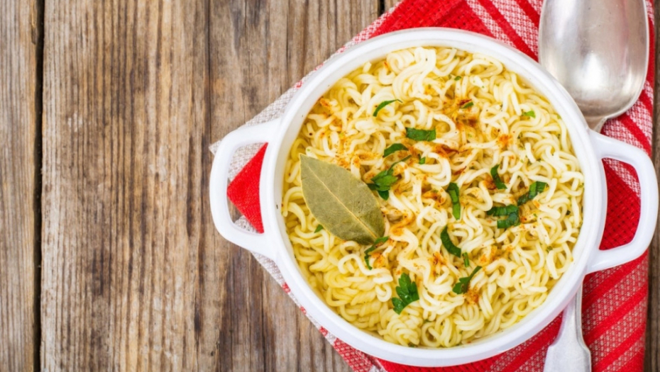 Meso iseckajte na komade, posolite pa pobiberite i ostavite da odstoji. U međuvremenu očistite povrće i isecite na manje komade. Zagrejte malo ulja i izdinstajte povrće desetak minuta. Supu u kocki rastvorite u vodi i sipajte u povrće. Dodajte meso, pustite da proključa i kuvajte 15 minuta. Potom dodajte isečene pečurke i rezance i kuvajte još 15 minuta. Dodajte so i biber po ukusu, soja sos i malo šećera.