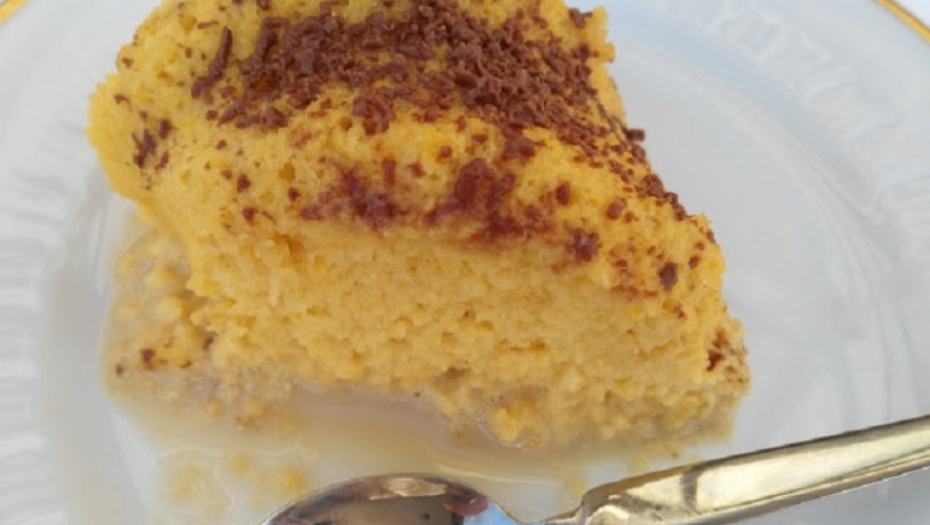 Umutiti belanca sa četiri kašike šećera, dodati žumanca i griz. Podmazati kuglof ili okrugli pleh, sipati i poravnati. Peći na 200 stepeni Celzijusa oko 30 minuta.