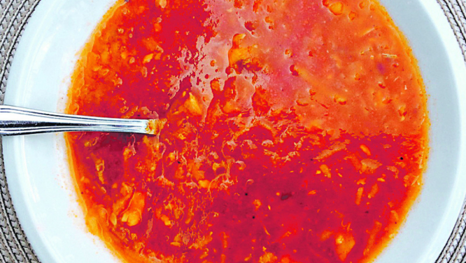 Ovu čorbu možete da napravite sa mesom ili bez. Meni je bila kompletan obrok, pa sam pred kraj krčkanja ubacila malo naseckane pečene piletine, koja mi je ostala od juče. Ako nemate pečenu piletinu, možete da iseckate svežu i da je ubacite zajedno sa lukom da se dinsta. Prvo sam iseckala luk i stavila ga da se dinsta sa malo maslinovog ulja. Pred kraj dinstanja sam ubacila narendanu tikvicu, pustila da se malo zajedno dinstaju na ulju, a zatim dodala seckani paradajz, paradajz-sos i vodu.