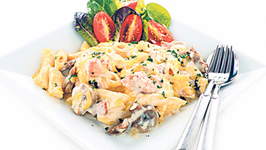 Makarone skuvajte i ostavite da se ohlade. Šampinjone, šunku i kisele krastavce sitno isecite, dodajte barene makarone, pavlaku, majonez i začine. Sve dobro promešajte i poslužite. Salata sa testeninom može da bude dobro rešenje za obrok na poslu, ali i ukusna i lagana večera. Brzo se i jednostavno sprema.