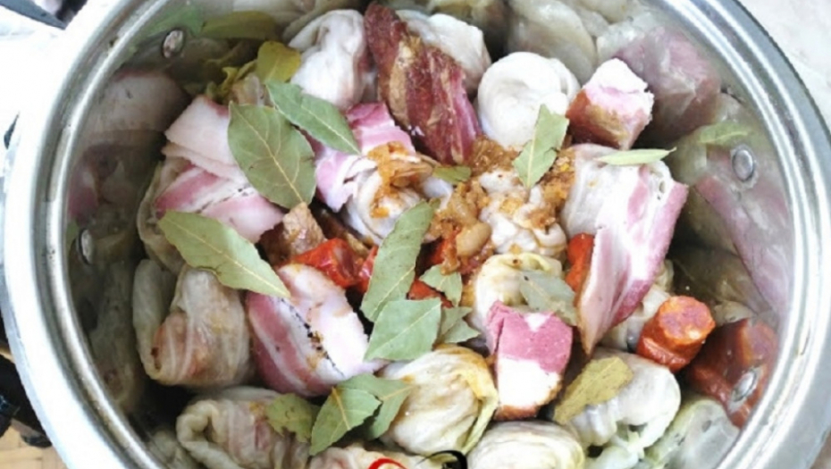 Na ulju propržiti sitno seckani crni luk. Šnicle iseći na trake širine dva centimetra pa propržiti sa lukom i dodati začin, alevu papriku, seckani beli luk i mleveni biber. Izdvojiti listove kupusa, zahvatiti kašikom meso i malo luka pa staviti na list kupusa, zatim iseći parče kobasice i list-dva suve slanine.