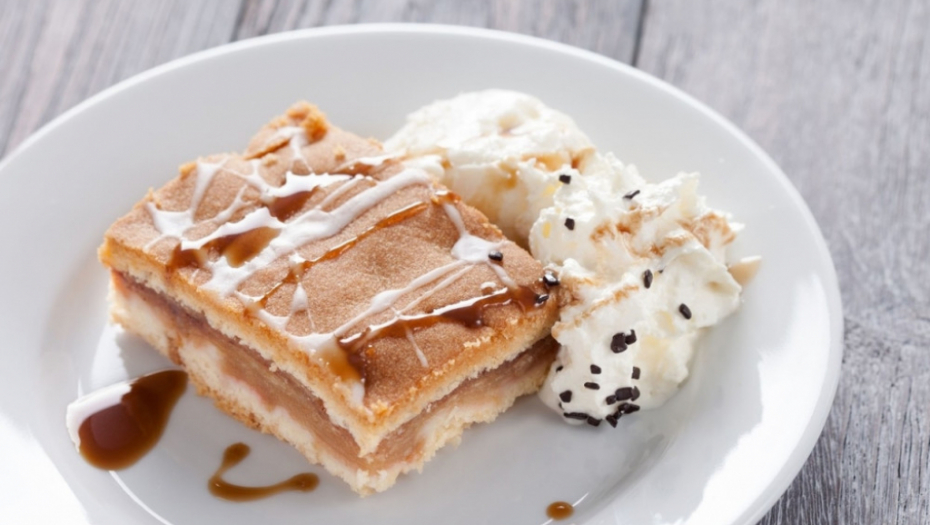 Kore poprskajte rastopljenim puterom pa na njih složite jabuke koje ste prethodno ogulili i iseckali na kockice veličine 1,5 cm. Posipajte ih šećerom, cimetom i po kojim zrncetom suvog grožđa koje ste prethodno, po želji, namočili u rum. Urolajte testo i posložite u masnu tepsiju. Pecite u zagrejanoj rerni na 180 stepeni oko pola sata do 40 minuta dok testo ne dobije zlatastu koricu. Pustite da se malo ohladi, nasecite na šnite, pospite šećerom u prahu i služite uz sladoled od vanile.