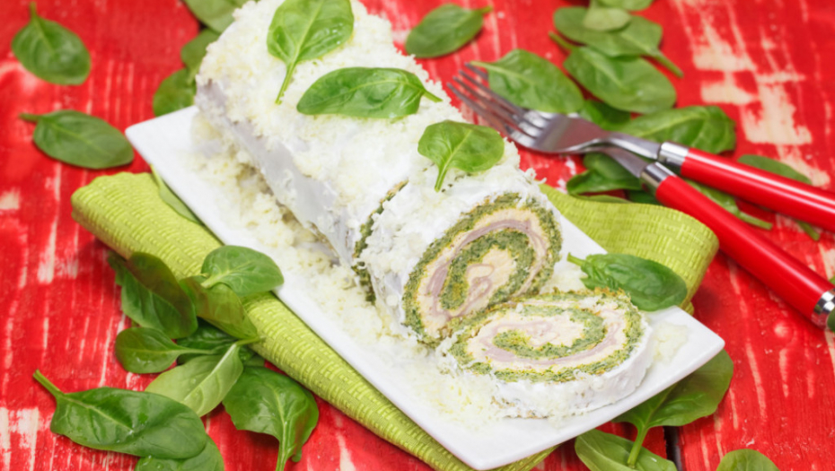 Rastopite margarin i propržite brašno, a zatim u to dodajte mleko, so, spanać i jedno po jedno žumance. Brzo varjačom mešajte sastojke dok se smesa ne sjedini. U drugu posudu umutite belanca, pa ih potom sjedinite sa prethodno dobijenom smesom. Za fil, kajmak sjedinite sa sitno seckanom šunkom. Veći pleh nauljite, stavite papir za pečenje i razlite smesu za koru. Pečenu koru uvijte u vlažnu krpu i ostavite da se hladi, pa kada se ohladi, nafilujte i uvijte u rolat. Ukrasite po želji.