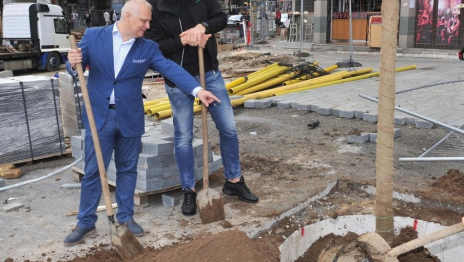 Glumci Bule Goncić, Nenad Nenadović i košarkaš Đorđe Gagić posadili prvih 12 stabala na Trgu republike (FOTO)