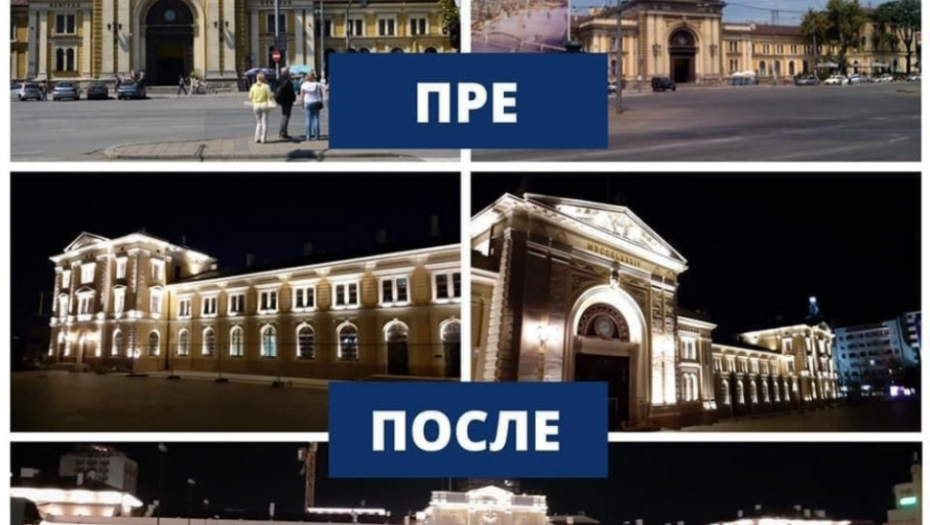 Vesić je i sinoć objavio fotografije nekadašnje Železničke stanice, navodeći da je nedavno obnovljena fasada osvetljena i da je puštena u rad dekorativna rasveta.