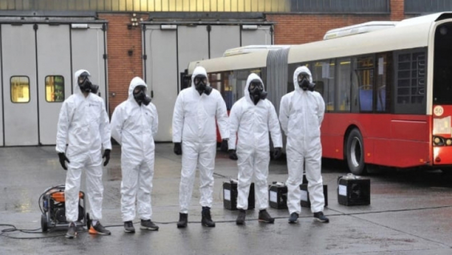 Timovi sa maskama i skafanderima ulaze u vozila gradskog prevoza (FOTO)