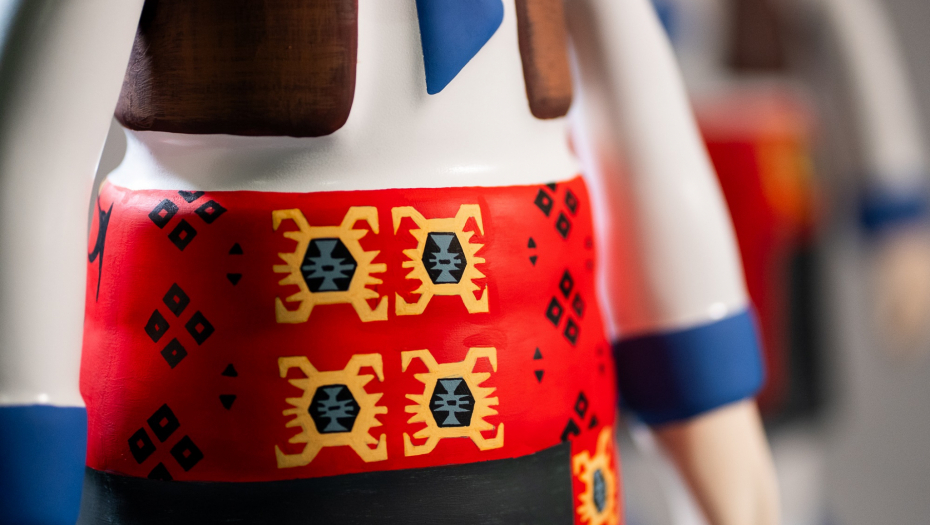Ručno oslikani, stilizovani likovi obučeni u prepoznatljive elemente srpske narodne nošnje na najbolji način oslikavaju identitet, tradiciju i kulturno nasleđe Beograda i Srbije, promovišući istovremeno vrednosti raznolikosti, inkluzivnosti i inovacije koje leže u srcu prve međunarodne izložbe na Zapadnom Balkanu.