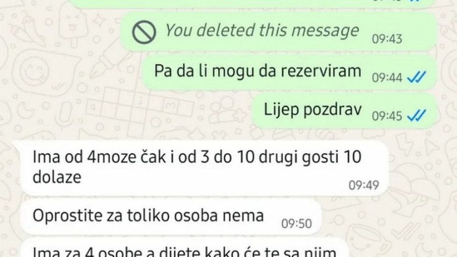 - Ne znam da li je za ovo kriv telefonski broj, ali ja sam puna i nemam nikakav apartman da je slobodan - napisala je žena koja iznajmljuje apartman.