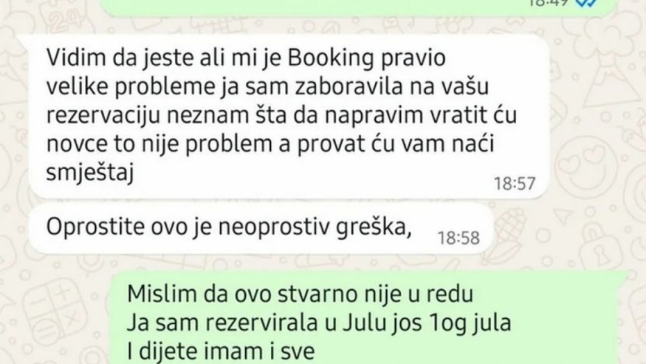 Kako navodi, do sada nikada nije imala problema sa rezervacijama te da je ovo je prvi put da se desilo da neko isti apartman izda još nekome. Najgore je to što se sve desilo u jeku sezone, kada su svi smeštaji već rezervisani.