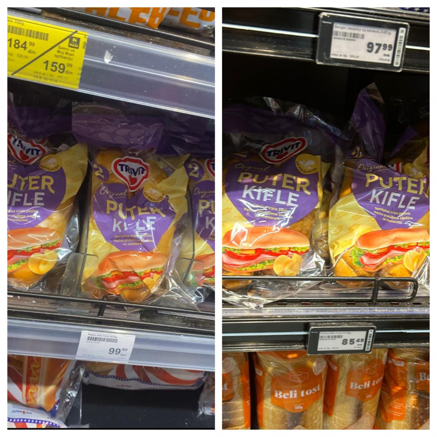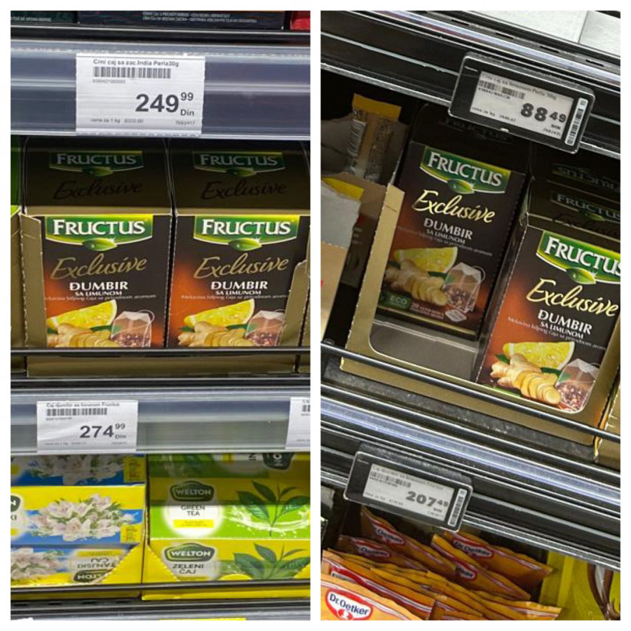 Obilaskom prodavnica u centru grada i upoređivanjem cena primetili smo da su negde one bile posebno istaknute akcijskim nalepnicama, dok su u drugim marketima postavljene samo bele oznake. U svakom slučaju, razlike su vidljive.