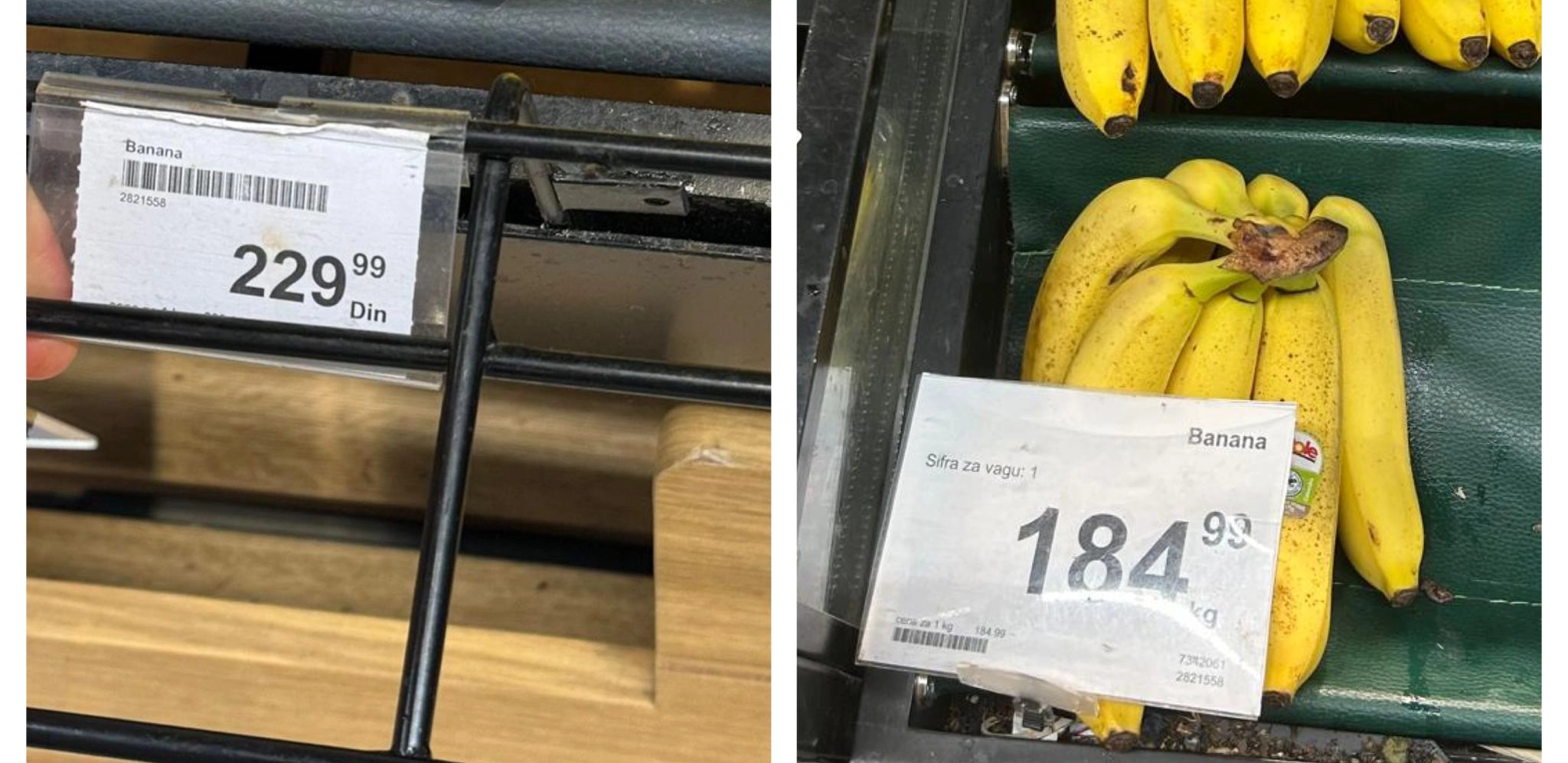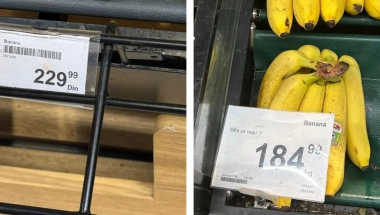 - Kilogram banana umesto skoro 229,99 dinara koliko je košta pre uvođena mera, sada je svega 184,99 dinara, što je razlika od skoro 20 odsto, preciznije 19,57.