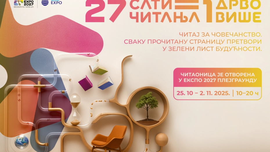 Od 25. oktobra do 2. novembra, čitaonica Ekspo 2027 Plejgraunda i biblioteke u deset gradova Srbije postaju centar nacionalne kampanje „Čitaj za čovečanstvo“, koja poziva građane da zajedničkim čitanjem ožive kulturu knjige i očuvaju nasleđe pisane reči.
