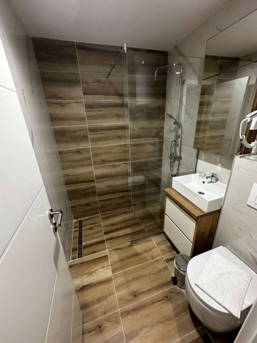 Kupatilo je manje, ali moderno sređeno i ima sve što je potrebno uključujući i modernu tuš kabinu.