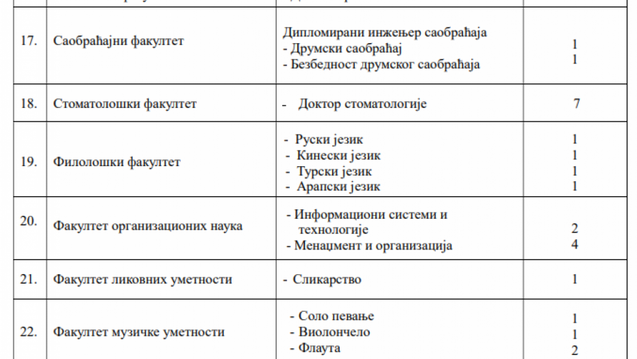 –9 stipendija namenjeno je studentima sa invaliditetom i studentima koji boluju od težih bolesti.