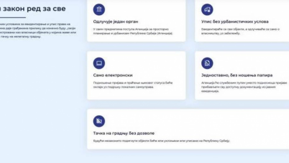 Prijava neupisanih objekata na osnovu Zakona o posebnim uslovima za evidentiranje i upis prava svojine na nepokretnostima počela je 8. decembra i trajaće do 5. februara.