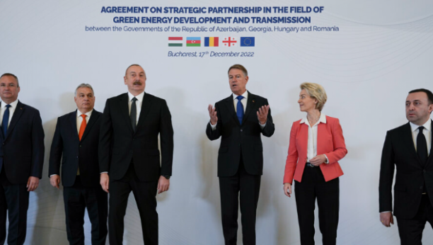 Sporazum između vlada Azerbejdžana, Gruzije, Rumunije i Mađarske o strateškom partnerstvu u oblasti razvoja energetike i transporta povezaće dve obale Crnog mora i mogao bi da transportuje električnu energiju do Moldavije, Zapadnog Balkana i Ukrajine, rekla je danas u Bukureštu predsednica Evropske komisije Ursula fon der Lajen.