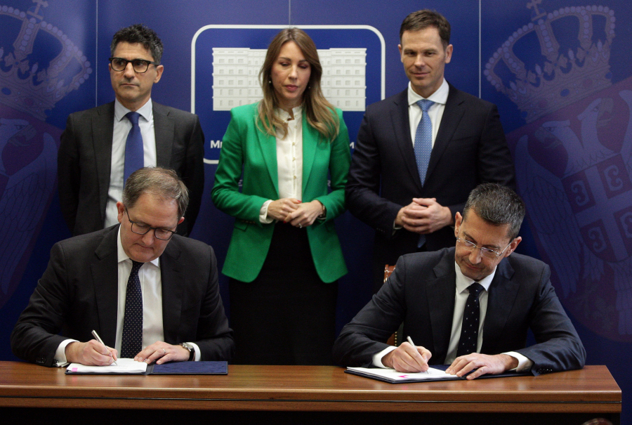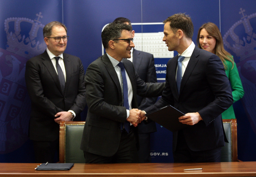 Potpredsednik Vlade Srbije i ministar finansija Siniša Mali i direktor Evropske banke za obnovu i razvoj (EBRD) za Zapadni Balkan Mateo Kolanđeli, kao i direktor Elektroprivrede Srbije (EPS) Miroslav Tomašević i direktor EBRD-ja za energetski sektor jugoistočne Evrope Gregori Zielinski, potpisali su danas u Ministarstvu finansija ugovore o kreditu vrednosti 300 miliona dolara, namenjenih ulaganju u elektroenegretski sektor Srbije.