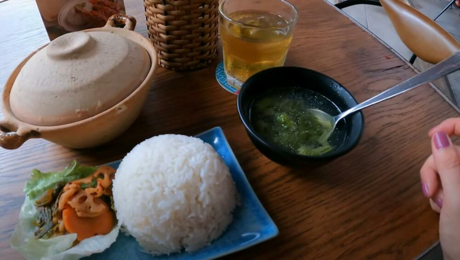 - Stigao je moj ručak, riža, povrće, dobila sam ledeni čaj i meso i to sve samo za 3 evra. Restoran je baš fin. To nije bilo sve, dobila sam i ovu supu, nešto zeleno je, ne znam šta je", rekla je ona.